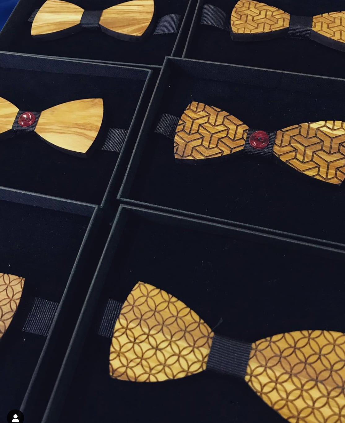 オリーブウッドでできたパピヨン(木製蝶ネクタイ・ボウタイ)